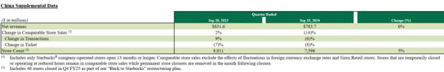 单看第四季度(收尾 2025 年 9 月 28 日),星巴克中国的营收达到 8.316 亿好意思元,同比增长 6%;同店销售额同比增长 2%,同店来回量同比增长 9%。