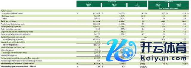 星巴克近日公布的 2025 财年(收尾 2025 年 9 月 28 日)登第四季度报高慢,星巴克大师的总体营收同比增长 5%,第四季度大师同店销售额增长 1%,这是七个季度以来的初度正增长,举座推崇好于商场预期。