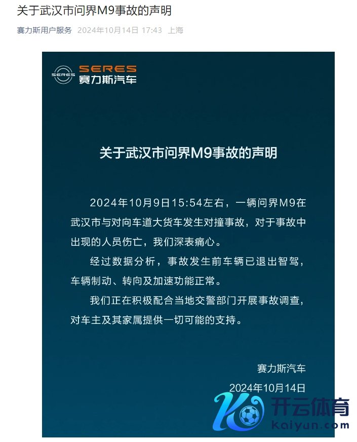 赛力斯武汉问界M9事故声明:事故发生前车辆已退出智驾 车辆制动、转向及加快功能平淡赛力斯武汉问界M9事故声明:事故发生前车辆已退出智驾 车辆制动、转向及加快功能平淡