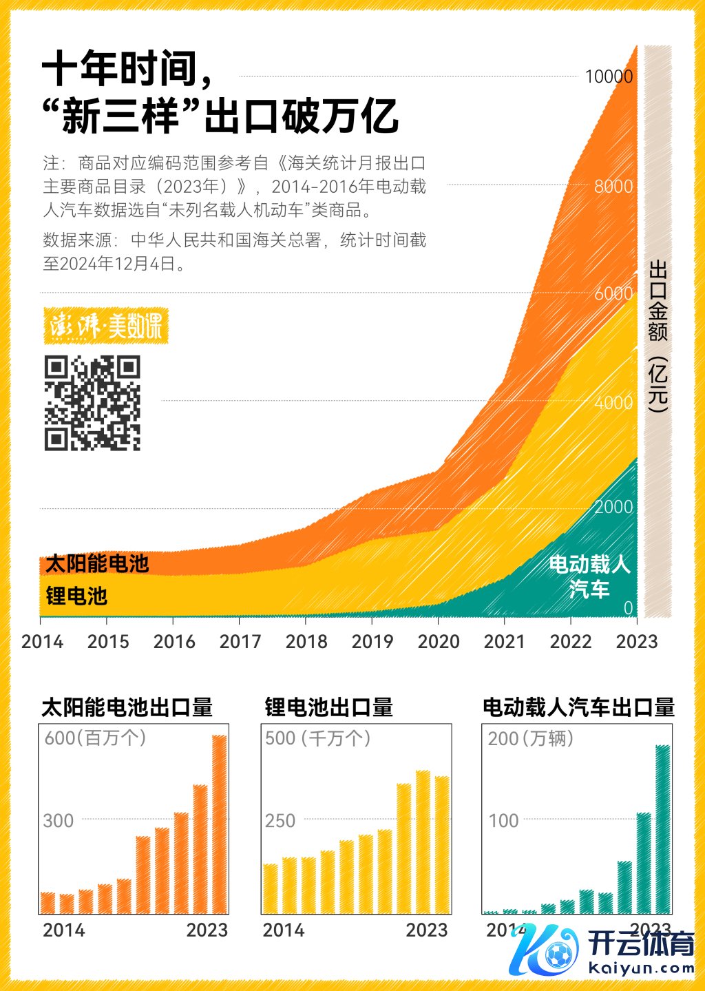 包括新动力汽车在内,外加锂电板、太阳能电板,被称为中国际贸“新三样”。海关总署数据显现,2023 年,“新三样”产物共计出口 1.06 万亿元,初度闭塞万亿大关,而只是在十年前,这三种商品的出口额还徜徉在千亿元。