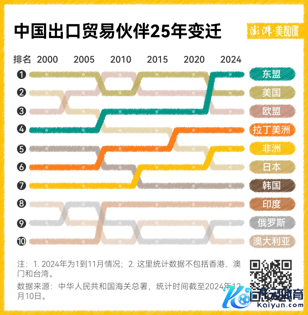滂沱新闻通过梳理生意的国别数据也发现,中国出口区域结构更增多元,并向发展中经济体及新兴阛阓歪斜,往日十几年,东盟、拉好意思、非洲等地区在国内出口“一又友圈”中的地位彰着飞腾。