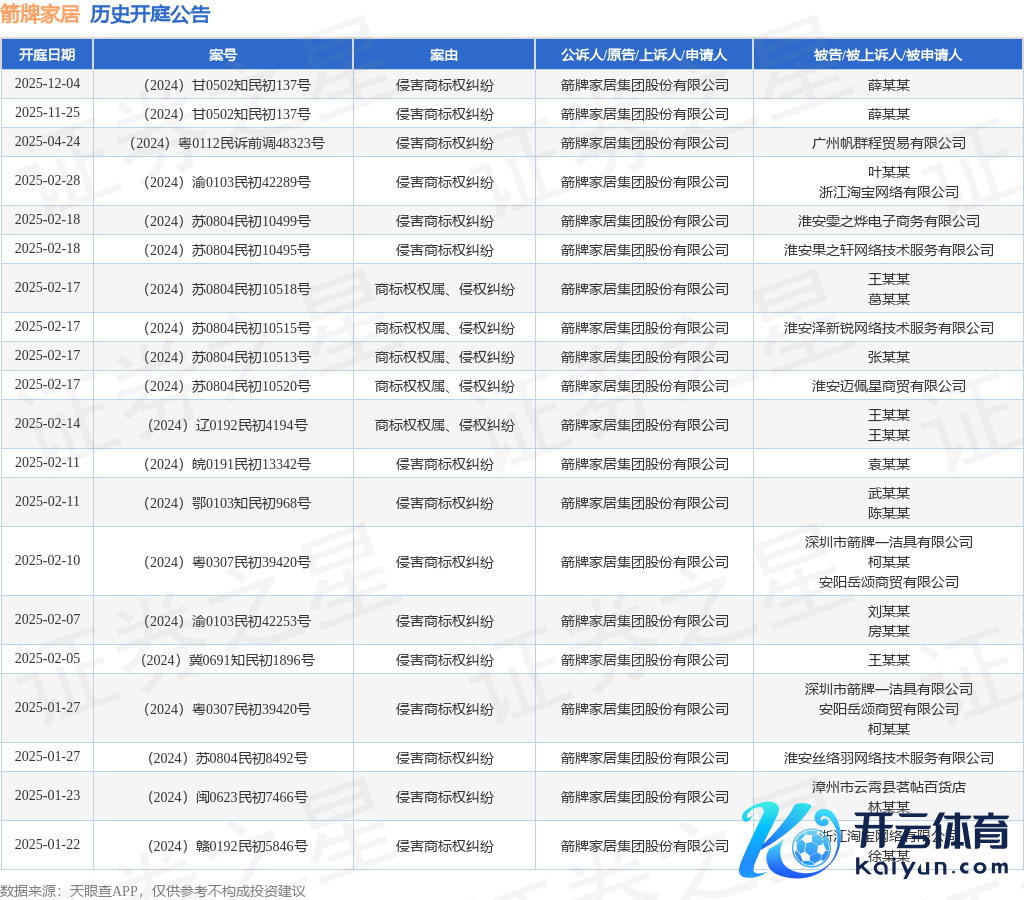本站音讯体育游戏app平台,凭据天眼查APP泄漏,近日公布了一则箭牌家居集团股份有限公司手脚原告/上诉东说念主的开庭公告,扎眼现实如下:
