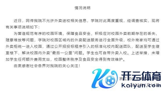 声明称,近日,网传我院不允许外卖进校相关信息,学院对此高度怜爱,经探访核实,现将关联事项施展如下: