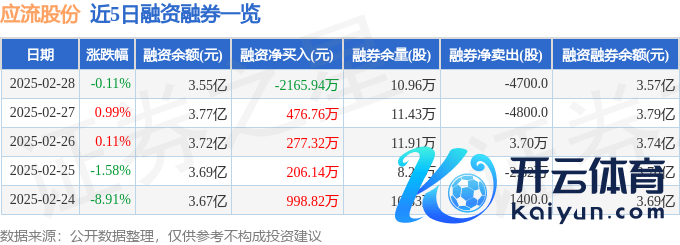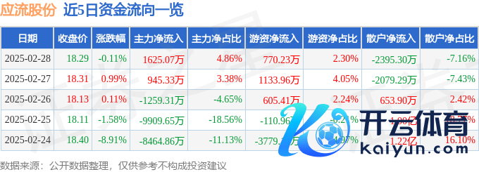 本站音信,截止2025年2月28日收盘,应流股份(603308)报收于18.29元,下降0.11%,换手率2.66%,成交量18.03万手,成交额3.34亿元。