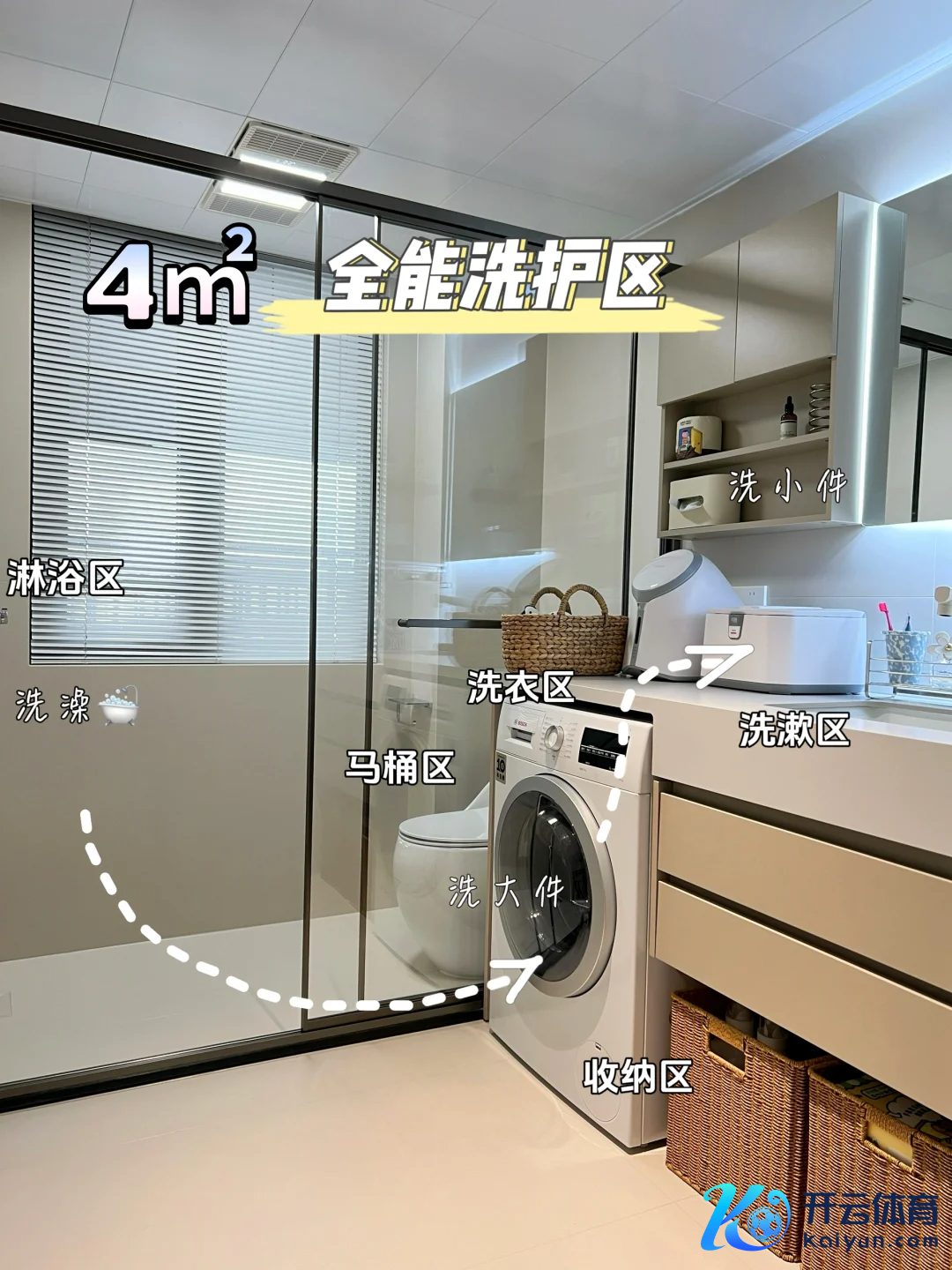 如果家里有两个卫生间,还能 “葬送” 一个卫生间的淋浴区,特意用来放洗衣机,上方装一根伸缩杆,秒变粗浅晾衣区,洗衣、晾衣一步到位。不外要闲适作念好卫生间的干湿分区,幸免耽溺时的水汽影响洗衣机脱手。