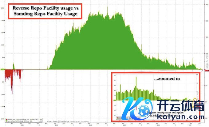 周三,好意思联储的常设回购机制(SRF)的使用量,生僻地攀升至了自6月(第二季度末)以来的最高水平。SRF是好意思联储在2019年那次流动性事件后引入的,旨在匡助缓解临时性货币市集压力,其使用量大增证明临时资金压力已超出市集自身调遣才调。